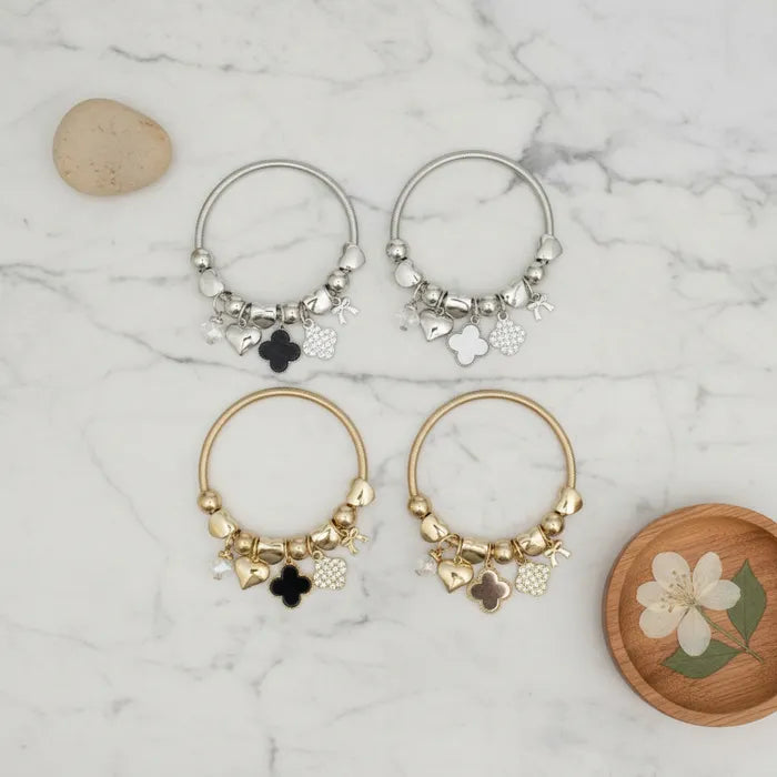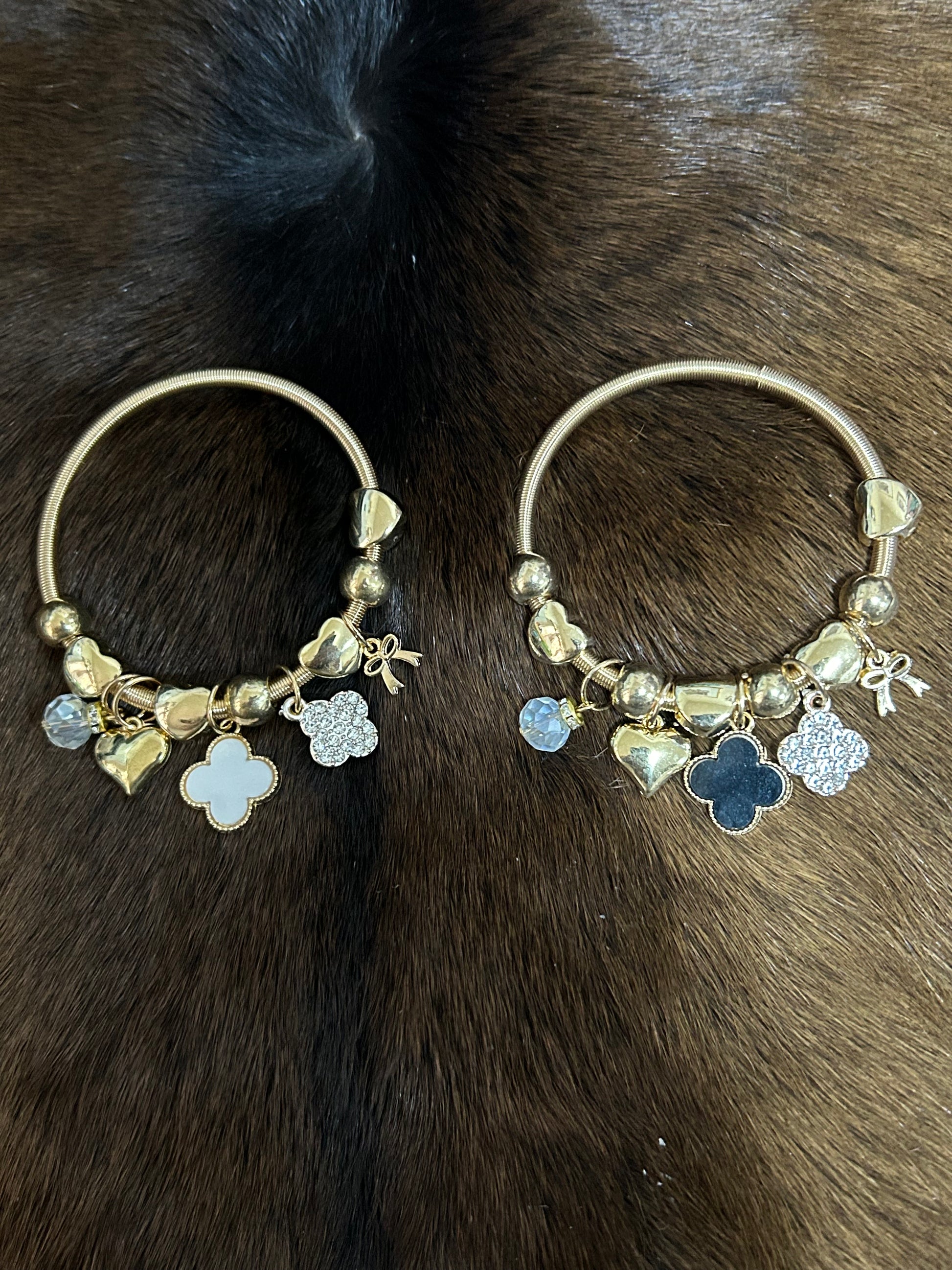 Bounce into style with these Black White Clover Jump Coil Bracelets—the perfect blend of whimsy and western charm. Featuring a playful coil design that springs to life on your wrist, each bracelet showcases striking black and white clover detailing that catches the eye. Lightweight and fun to wear, these coiled beauties add a spirited pop to any outfit. Whether you're layering them or wearing solo, they're an instant conversation starter for anyone who loves a little personality in their accessories.