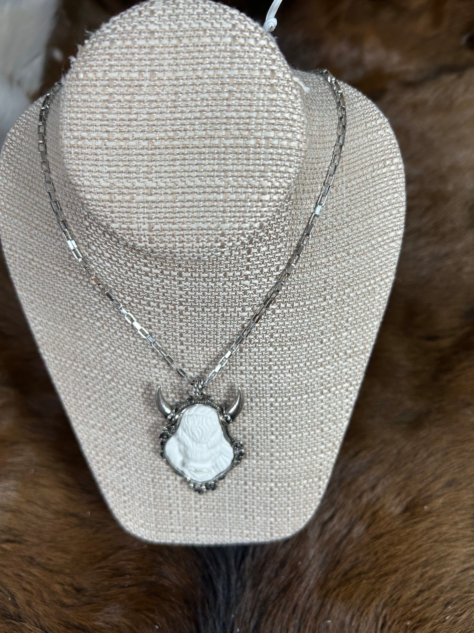 Buffalo Head Silver Necklace.