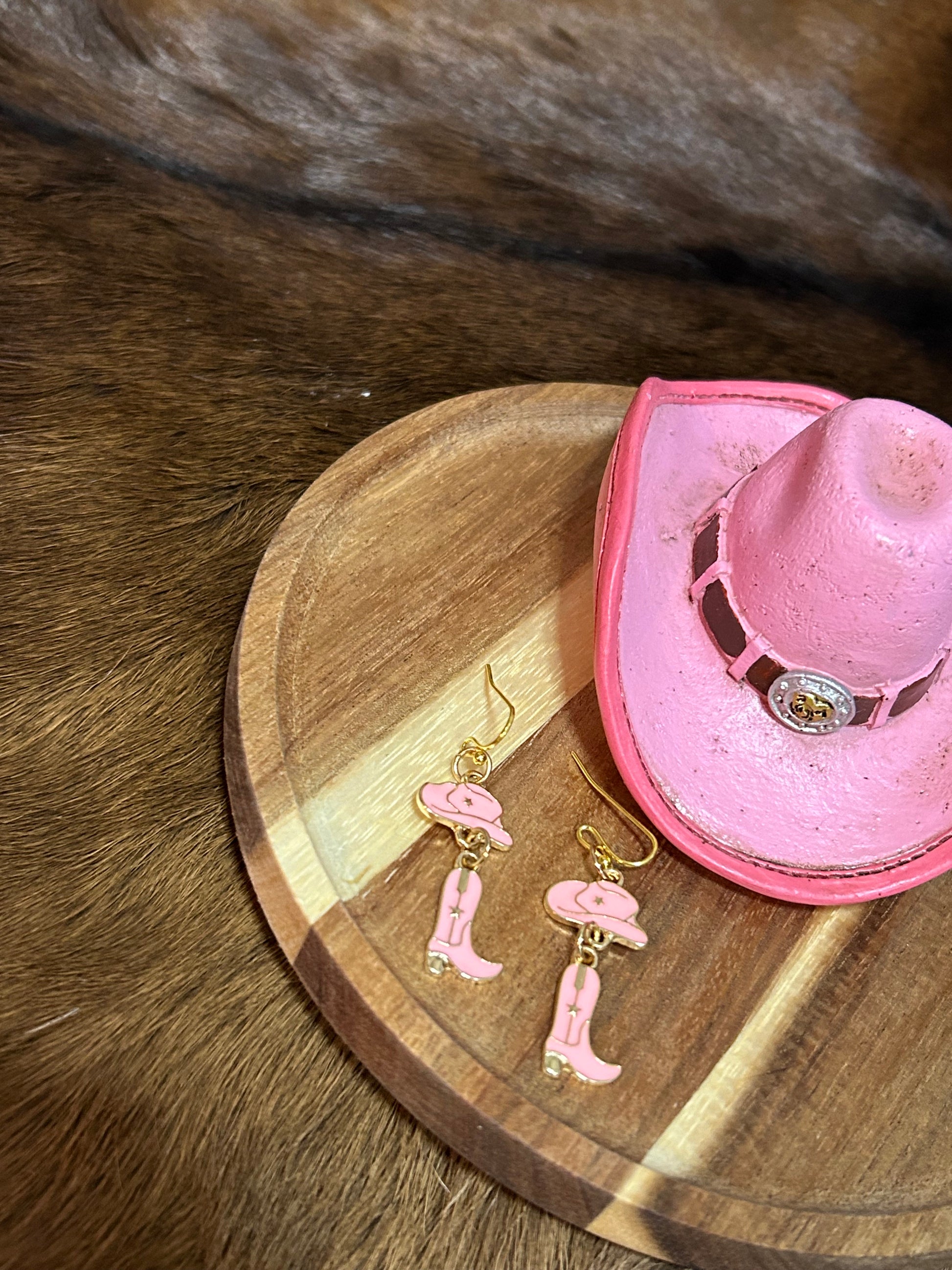 Cowboy Hat Boot Pink Gold Earrings Girls