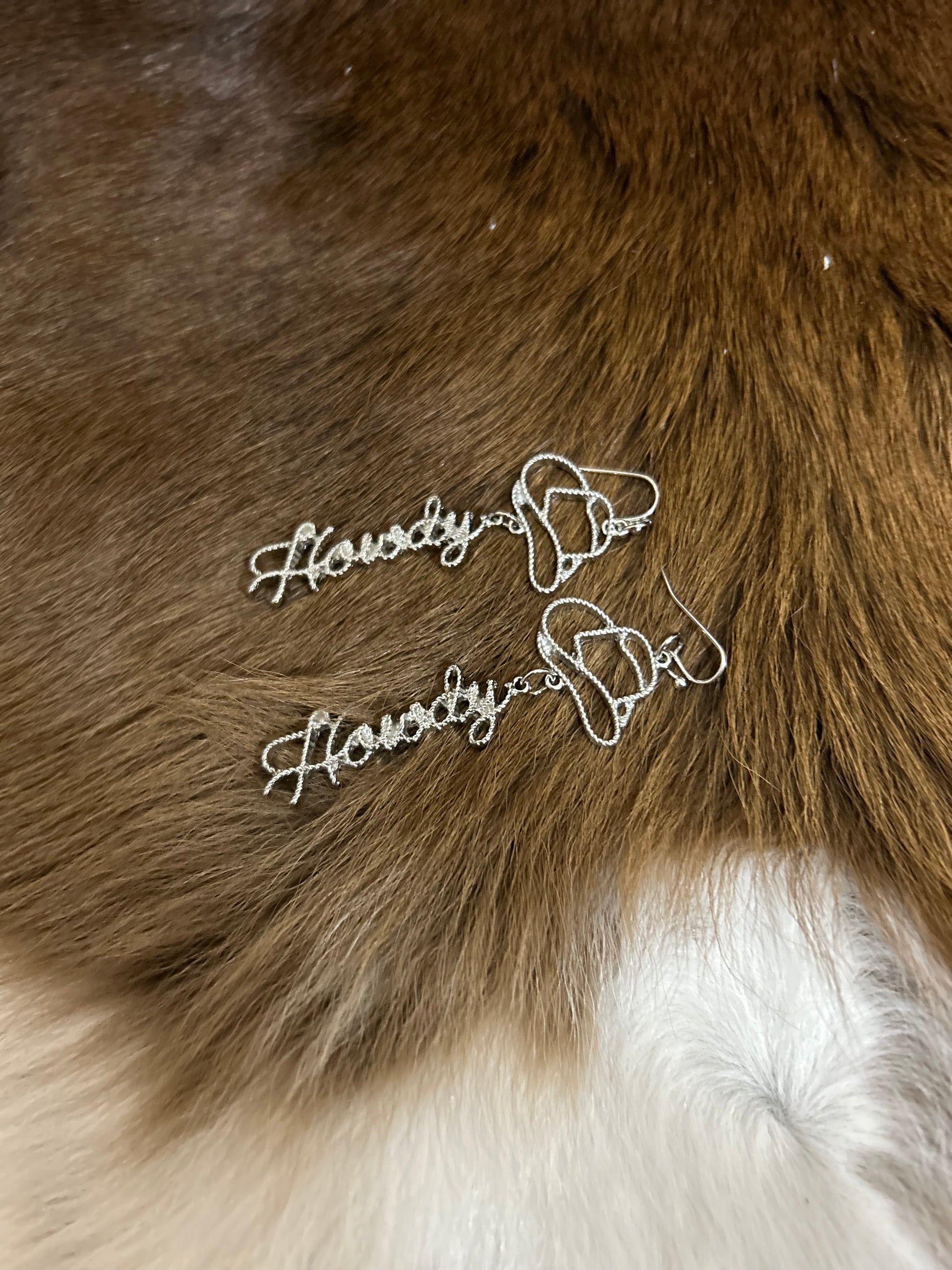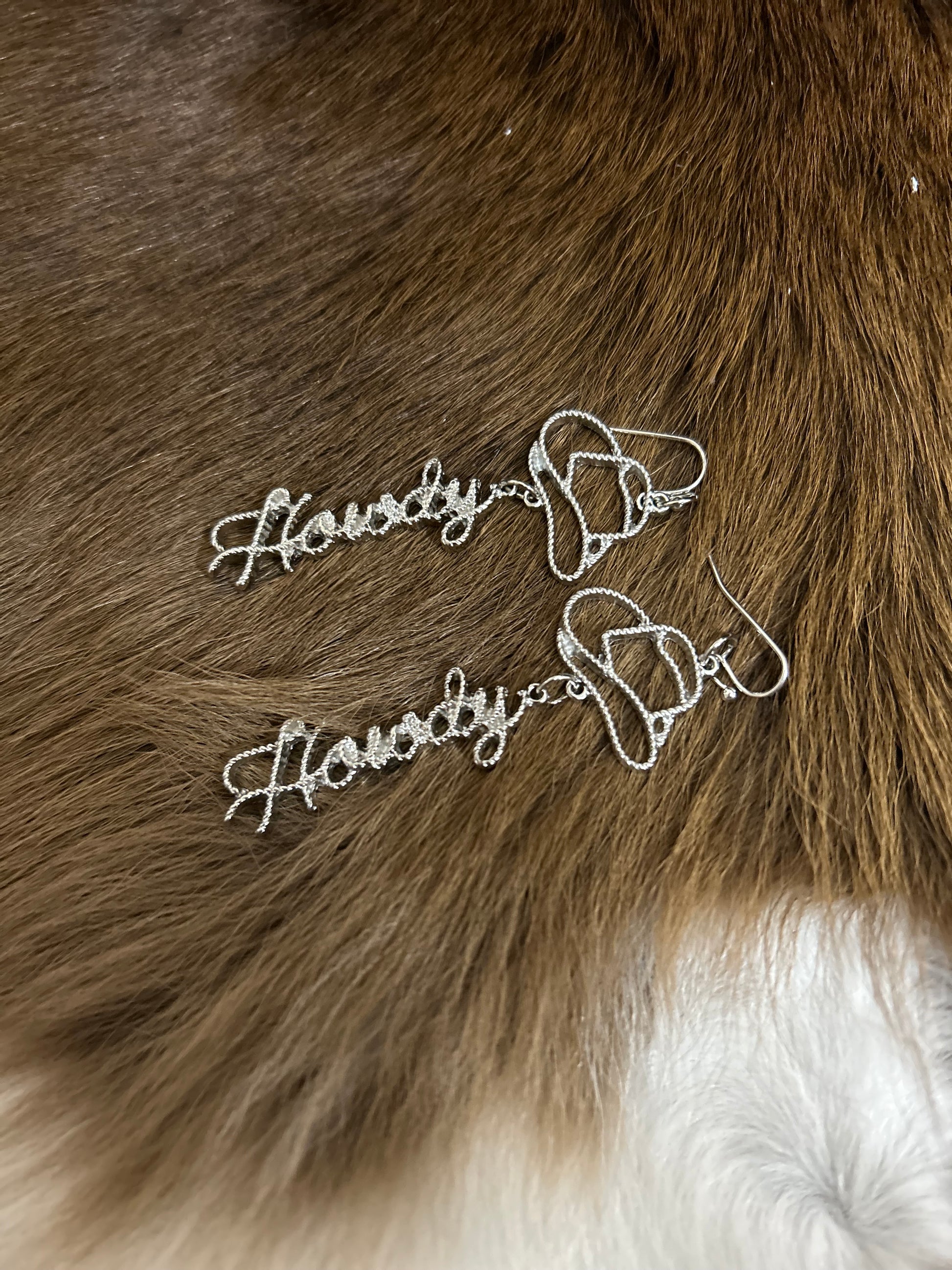 Cowgirl Silver Howdy Cowboy Hat Earrings Dangle