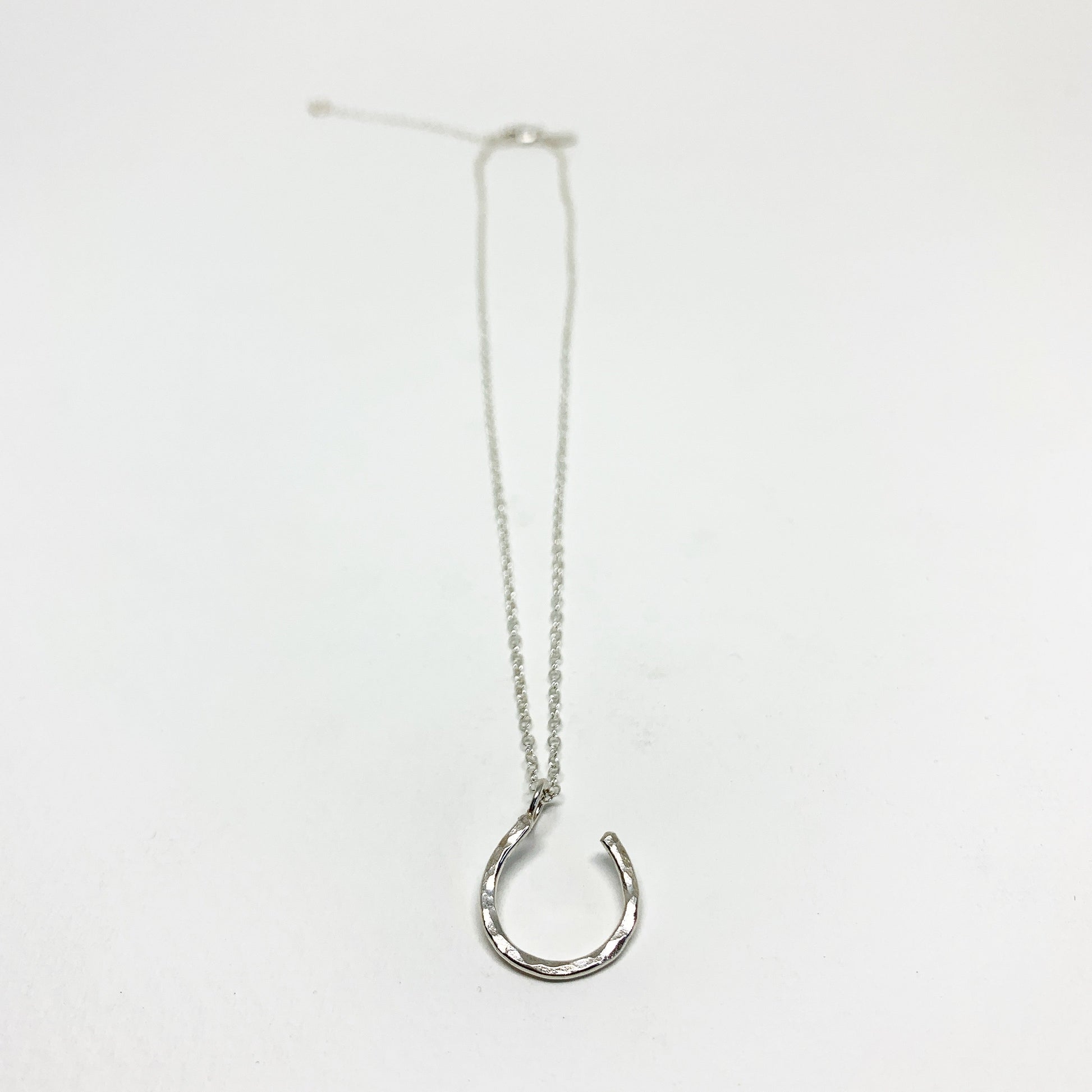 This handcrafted piece features a beautifully shaped horseshoe pendant, symbolizing good fortune and protection.