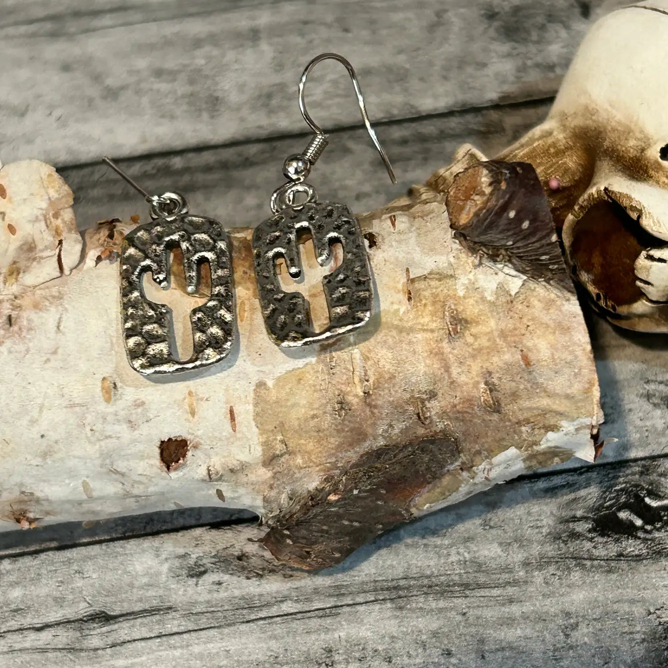 Elevate your style with these elegant Stainless Steel Silver Cactus Theme Earrings. Crafted with intricate cactus cut-out designs, these earrings are perfect for any occasion.