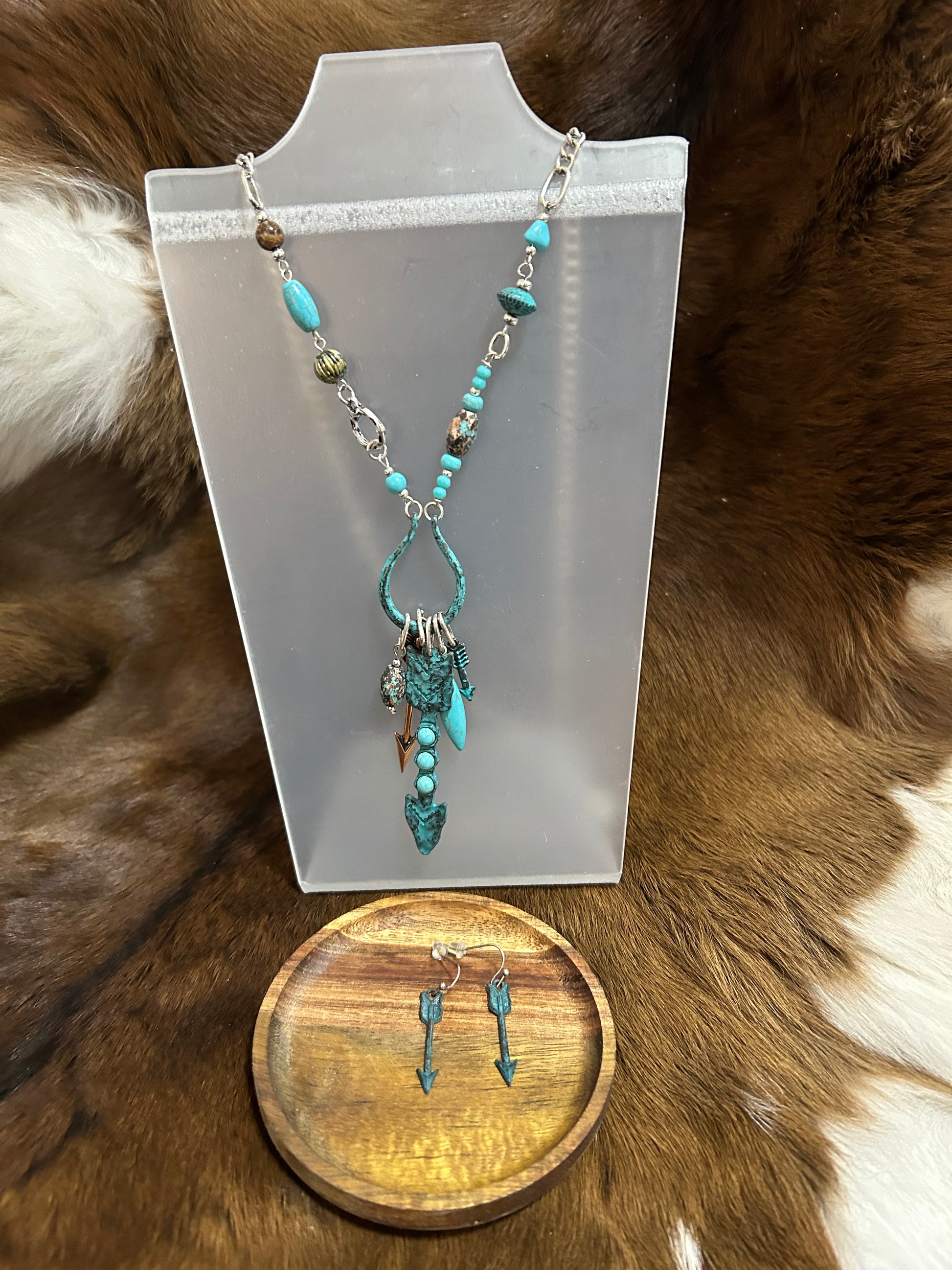 Turquoise Arrow Horseshoe Western Style Necklace and Earrings