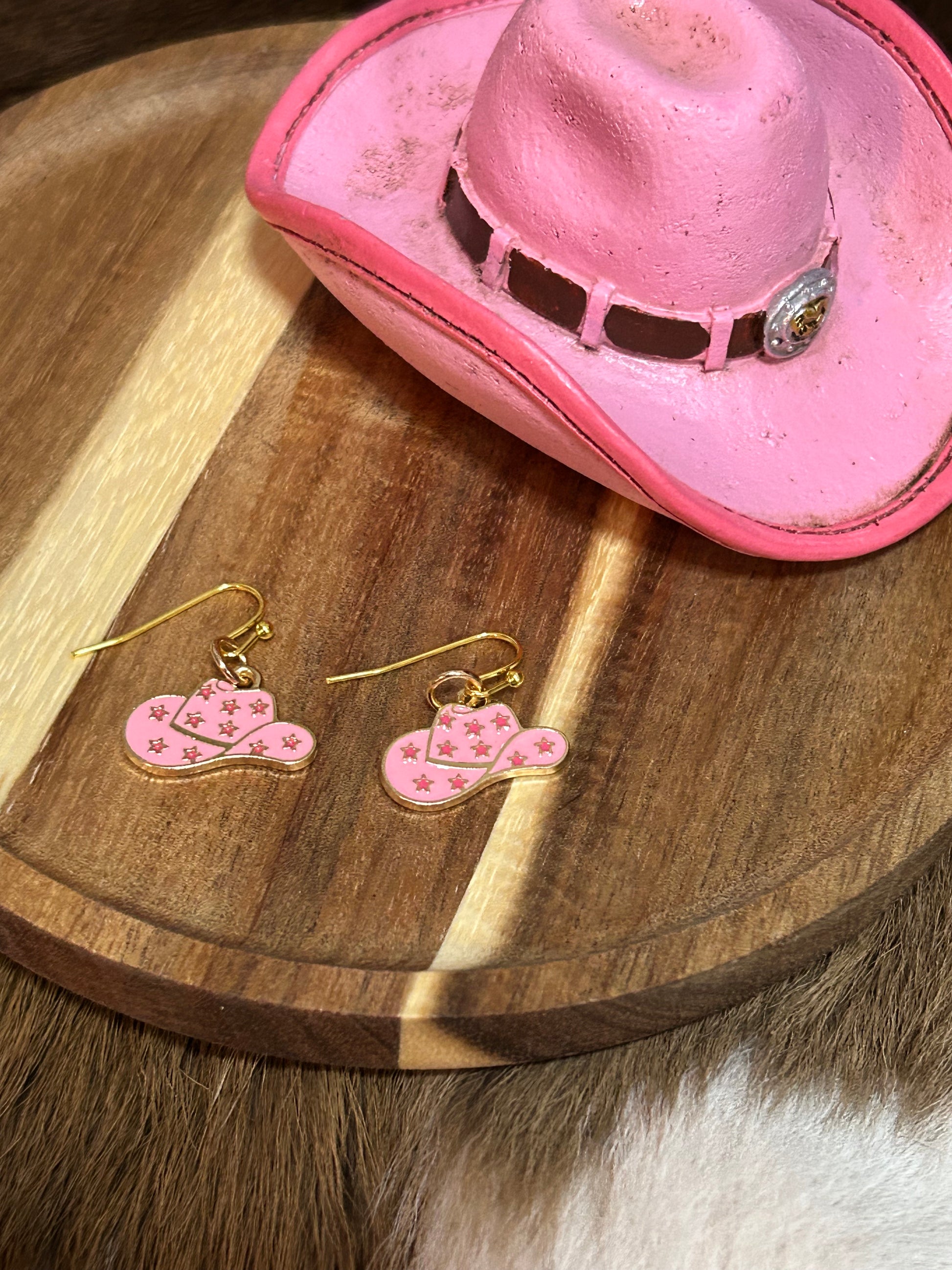 Western Cowgirl Hat Pink Red Stars Earrings Dangle
