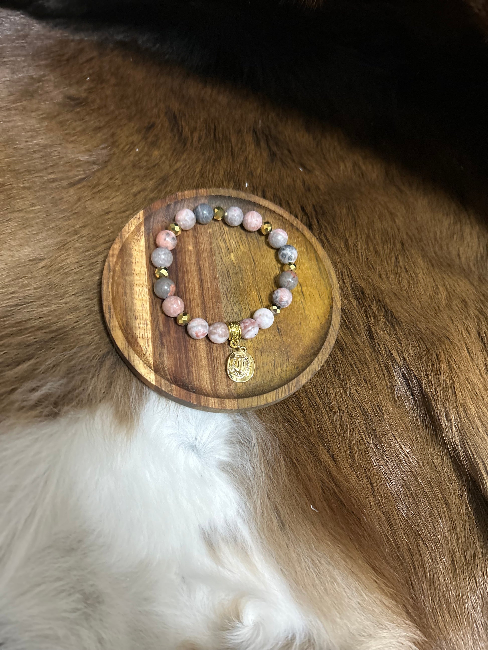 Western Cowgirl Stretch Jasper Beads Bracelet Gold Hat Charm Rhinestones