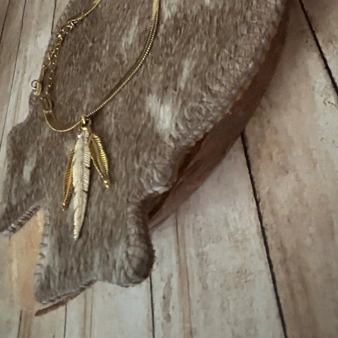 Elevate your style with our Western Feather Bracelet featuring a herringbone link chain in luxurious gold. Perfect for adding a touch of elegance to any outfit.