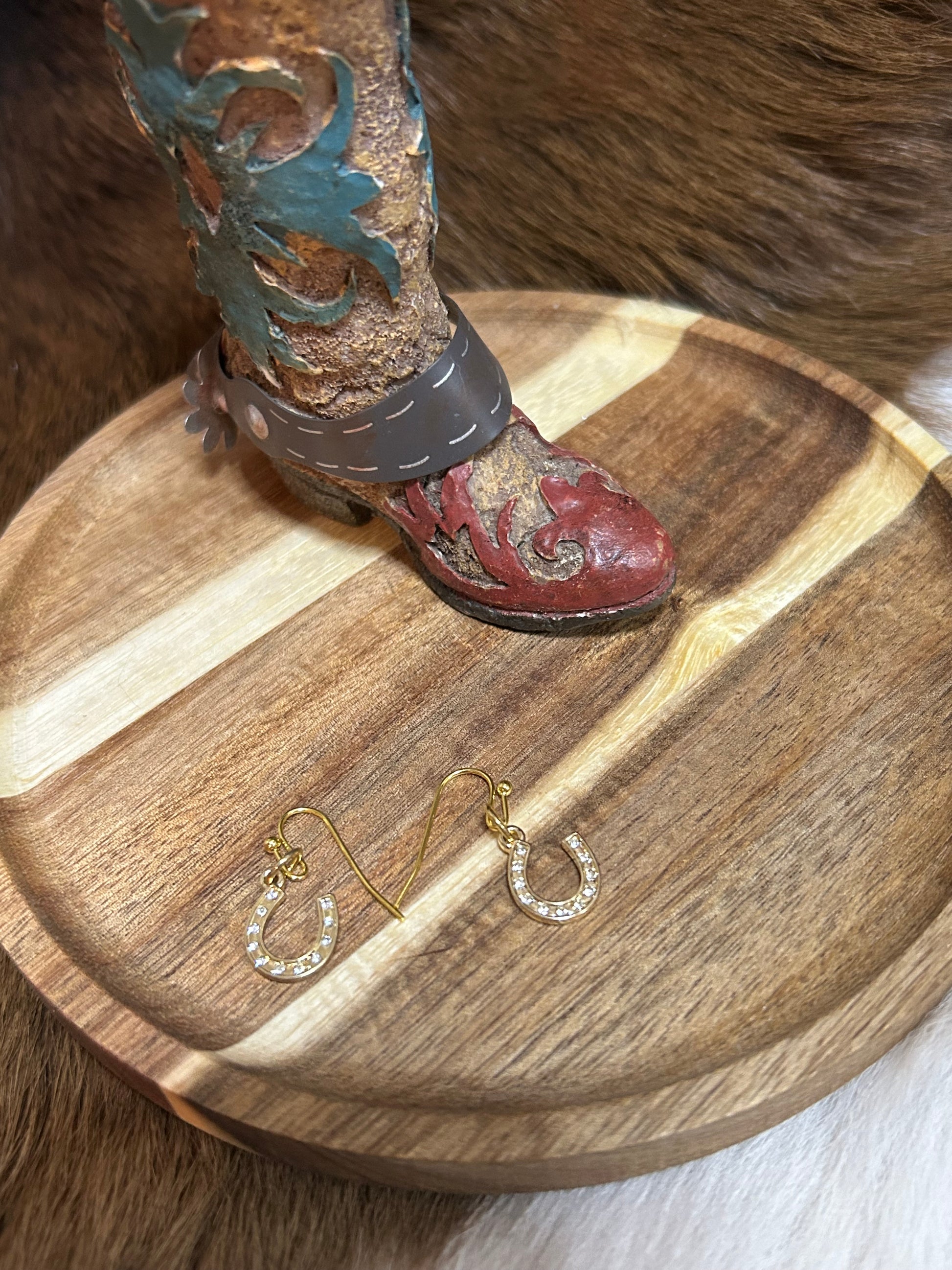 Western Rhinestone Gold Horse Shoe Dangle Earrings