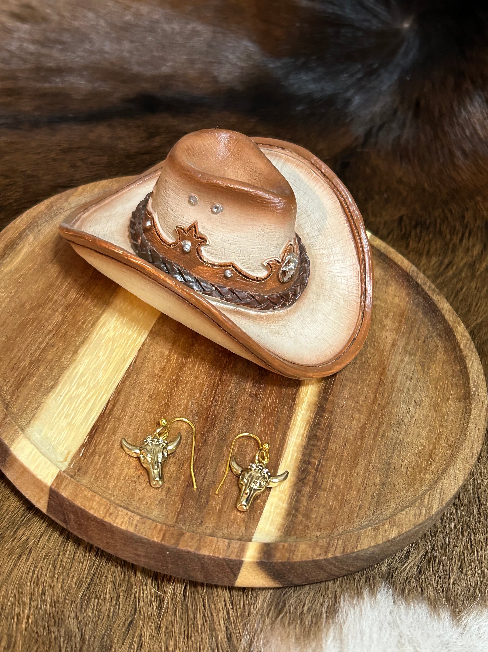 These striking steer head dangles bring bold western flair to any outfit. Crafted with gleaming gold-tone details and sparkling rhinestone accents, they catch the light with every turn of your head. Perfect for rodeo season, country nights out, or anyone who loves a statement piece with attitude. Lightweight and comfortable for all-day wear, these earrings celebrate your love of the wild west in style.