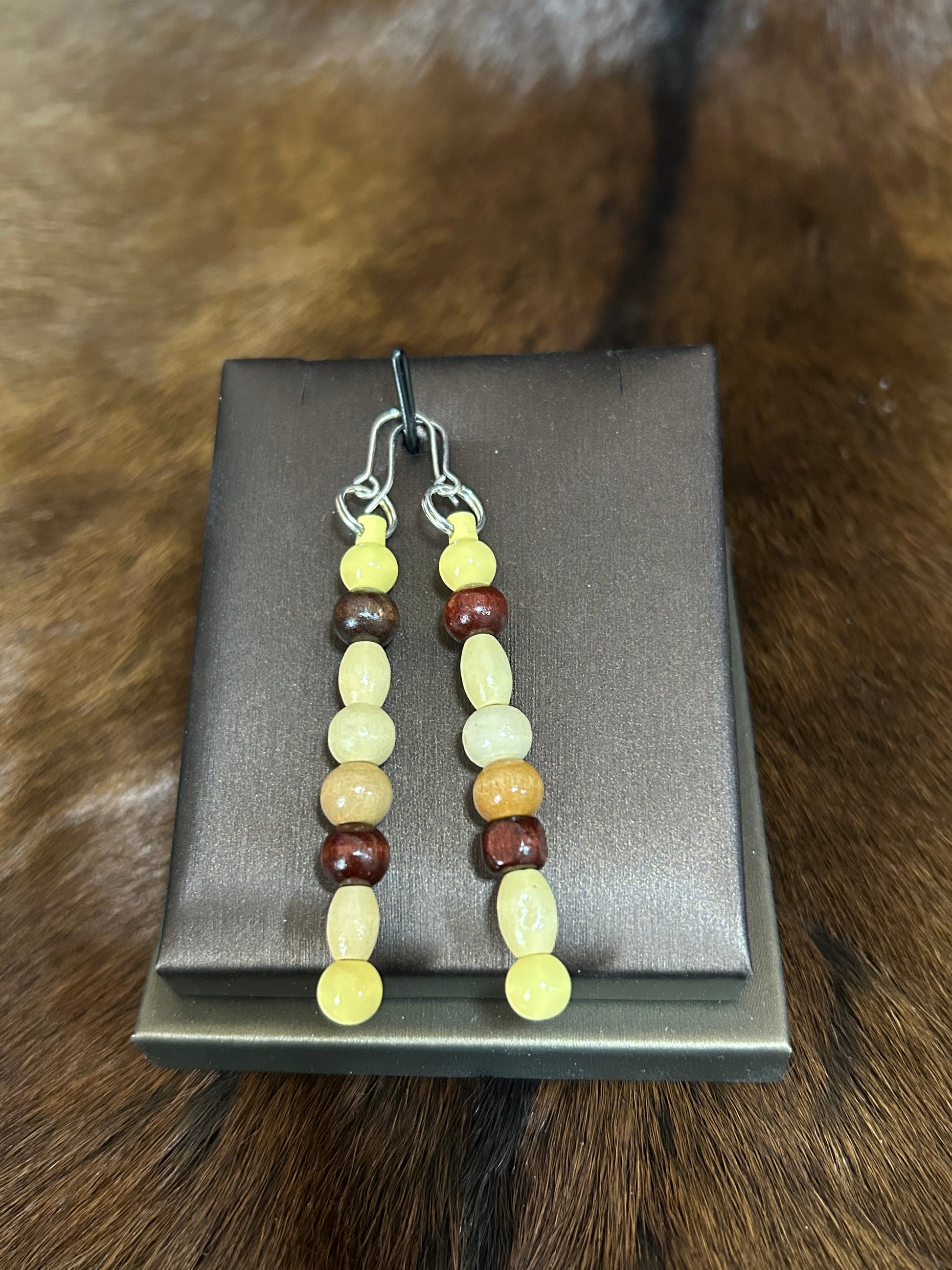 Handcrafted wood bead earrings that swing with effortless charm. These lightweight dangles feature natural wood tones and organic textures, perfect for adding warmth and movement to any look. Whether you're dressing up for a night out or keeping it casual, these earrings bring a touch of earthy elegance without the weight. A versatile western-inspired accessory that celebrates natural beauty and artisanal craftsmanship.